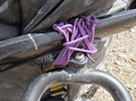 Mas vale a explicação didática... Não foi falha mecânica do material (o bike trailer é de excelente qualidade), nem barberagem minha (que sou extra cuidadoso e bom piloto de MTB), acontece que a trepidação é intensa demais em estradas off road e soldas abrem o bico mesmo. O problema é o material do trailer. Alumínio não dispersa impacto e exige soldas super reforçadas. Fiz uma amarração com cordim de escalada de 3 mm, em "X", que manteve a rachadura fechada e aparentemente estável. Segui viagem. O mais eu podia fazer?