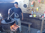 Parei para almoçar num canteiro de obras. Caminhões, tratores, picapes, containers e um rapaz cortando lenha me receberam. Os demais trabalhadores estavam todos fora. Fui para dentro de um barraco de tábuas com um tambor enferrujado por fogão - a cozinha. Nas paredes externas havia lembranças de cardápios passados - uma caveira de bode, um casco de tatu, uma ave ainda com penas crucificada. Nas paredes internas havia vários sacos plásticos com condimentos e temperos. O barraco era imundo, mas algo me dizia que o rapaz era bom cozinheiro.
