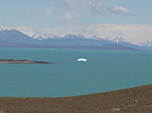Passei uma hora descansando e esperando o sol baixar um pouco. Eu nunca tinha visto calor igual na Patagônia! Pareceia verão no Brasil... Comi e descansei à sombra de um container. Quando estava para partir, fui me despedir do cozinheiro, que me ofereceu um pedaço de carne escura, quase preta, retirada na ponta de uma faca de uma panela pesada de ferro com um litro de óleo fervente. Carne de guanaco caçado ali por perto.