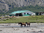 Os 48 quilômetros pelo Vale do Rio Mayer foram maravilhosos e fiz dúzias de fotos. O caminho vai subindo delicadamente e de forma constante, a vegetação muda e fica mais verde, mais alta, mais "alpina" (embora eu devesse dizer "andina"). Um lago azul forte, quase anil, coroa o cenário e dá vontade de parar e fazer acampamento ali mesmo. Não há grandes dificuldades até chegar ao fim da estrada e ao posto dos Carabineros de Chile, onde se faz o controle de passaporte para deixar o país. Mas é preciso acordar os oficiais, que não tem absolutamente nada para fazer o dia todo, todos os dias, o ano todo. Praticamente não passa turistas por lá. Vocês vão logo entender porque...