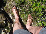 Por mais de uma hora caminhei e empurrei meu comboio de um lado para outro, buscando não perder de vista os rastros de 4x4. De repente eles sumiram e eu me vi no meio do campo alagado, cercado de riachos por todos os lados e com as solas dos pés latejando de caminhar descalço sobre pedras. Eram 19:30 e eu não queria mais seguir adiante e correr o risco de caminhar à noite por terreno difícil e desconhecido. Montei acampamento no meio do nada.