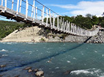 Tentei o mais que pude desviar dos arbustos espinhudos conhecidos como matorrales, tentei manter a direção desejada. Por quase duas horas andei em ziguezague até chegar às margens do Rio Carrera. A essa altura o pneu traseiro da bike já estava furado e minhas pernas todas raladas. O rio estava violento, impossível passar pela água sem um bote ou algo semelhante. No inverno veículos 4x4 cruzam sem grandes problemas, no verão só a pé ou empurrando a bike pela passarela, que encontrei centenas de metros rio acima.