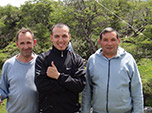 Havia ainda mais um rio a cruzar - muito largo e volumoso, que me deixou temeroso - que consegui vencer sem me molhar... Graças à carona inesperada na caçamba de uma caminhonete 4x4, do dono das terras da região e construtor da famosa passarela - Don Ramiro Gregoria, da Estancia Tucutucu. Uma sorte e uma alegria, nos demos muito bem e marcamos de tomar um vinho juntos em Bariloche ao final da expedição, onde ele vive parte do ano.