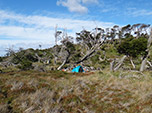 A paisagem estava ainda mais bonita, mas limpa depois da chuva, a vegetação brilhante e reluzente. Próximo do refúgio em ruínas Beaucheff o tempo virou e começou a chover. Não pararia até nossa chegada a Puerto Williams, no dia seguinte. Encharcados, com um pouco de frio, decidimos montar acampamento. Dormimos sobre solo empapado de água com o termômetro marcando 4° C e a umidade doendo nos ossos.