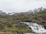 O segundo dia nos levou por meio de bosques densos e sem nenhuma indicação de trilha, mas isso não é culpa do roteiro… Na minha arrogância em pensar que o roteiro era moleza não estudei a descrição disponível na cidade e simplesmente entendi a “lógica do roteiro”, simplesmente segui o Rio Windhond de sua nascente à foz, mas fiz isso pelo lado errado! Dos 13 quiômetros que caminhamos no segundo dia metade foi rasgando mato no peito e ouvindo a Adriana reclamar na minha orelha, com toda a razão (o que torna tudo ainda pior). Tudo debaixo de forte chuva, que caiu incessante por toda a noite. O Rio Windhond estava desfigurado e impossível de cruzar. Tivemos que montar acampamento e esperar a baixa das águas. Chegamos ao Refugio Charles, depois de quase 40 quilômetros de trekking ao meio dia o terceiro dia de caminhada, sendo que eu havia planejado fazer o trecho em apenas um dia!