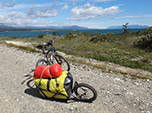 No mirante do Paso Garibaldi, entre Ushuaia e Tolhuin, havia um ônibus de turistas estacionando quando cheguei. O dia estava nublado e choviscava. Todos estavam bem encapotados e eu vestia a bermuda que uso sempre para pedalar e estava de camiseta de manga comprida. Enquanto dezenas de máquinas fotográficas registravam a paisagem, eu dei meia volta e me meti, com a bike e o bike trailer, em uma trilha de terra que desce do paso até as margens da Laguna Escondida – a estrada velha – toda erodida, com pedras soltas e um córrego de água de chuva cascateando pelo meio. Enquanto eu descia, controlando a bike para não levar um tombo, ouvia os assobios, gritos e incentivos dos turistas. Definitivamente, ciclistas na Patagônia formam um espetáculo à parte…