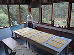 Nossa casa está aberta a todos. Temos oito camas para hóspedes, uma grande mesa de jantar que promete ser farta, uma sala de estar aconchegante cercada de janelas com vista para bosques de araucárias, banho quente de aquecedor a gás, horta ao lado da porta da cozinha, lareira e trilhas, muitas trilhas. A proposta é recebermos muitas visitas, que contribuirão com sua energia e apoio para que a vida no campo se torne autossustentável.