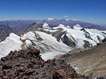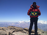As 13h do dia 1 de janeiro de 2013 após 7 h de ascensão fomos os primeiros a chegar ao cume das Américas no primeiro dia do ano. O clima estava perfeito com pouco vento, céu azul e poucas nuvens. Foi uma alegria para meu cliente, ele não acreditava que conseguiria chegar após tantos momentos de incerteza na subida. Estávamos cansados, mas nos sentimos bem. Ficamos ali por uma hora fazendo fotos e vídeos, desfrutando da maravilhosa vista e esperando que aparecessem nossos companheiros.