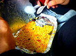 Viajamos por três dias para chegar ao país. Depois de sair do Brasil em 27 de dezembro de 2012, pegamos um voo via Singapore Airlines, uma experiência incrível com serviço de bordo de alto nível, passando por duas conexões, a primeira em Barcelona após 11 horas de voo no dia seguinte e outra em Cingapura após mais 8 horas de voo. A terceira etapa do voo teria mais 5 horas com destino a Mumbai. Já em 29 de dezembro, após chegarmos ao nosso destino, percebemos que uma nova cultura e rotina nos seriam apresentadas com a profusão típica das grandes metrópoles. Na verdade, recebemos um choque enorme pela quantidade de pessoas, carros e outros meios de transporte todos misturados nas vias. Um caos vivendo em harmonia. Nessa região da costa oeste da Índia o clima era de calor. Aproveitamos nosso primeiro dia em terras asiáticas para nos organizar, revisar o roteiro, trocar dólares por rúpias e comprar a passagem de trem para Goa, nosso destino para o Réveillon. Fomos recebidos com o assédio constante de vendedores ambulantes, pedintes e religiosos. Um deles nos presenteou com uma pulseira de flores ligada à crença hindu, que veio para nos abençoar durante todo o dia. Agradecemos em hindi: Dhanyavada! Caminhando a pé pela cidade, passamos em frente ao “Gateway of India”, vimos uma quantidade absurda de turistas locais e estrangeiros, depois entramos no luxuoso hotel “The Taj Mahal Palace”, onde nos infiltramos como falsos hóspedes e vimos até uma noiva indiana lindíssima... Passamos próximo a alguns guetos ou favelas tentando encontrar o Mercado Colaba, esse sem sucesso. Durante a tarde visitamos alguns pontos turísticos conhecidos, já tentando nos acostumar à loucura indiana, aos sons das buzinas e a sua culinária. Por falar em culinária, logo procuramos provar uma das principais iguarias indianas, as samosas (chamuça em português), um bolinho frito ou cozido com um recheio saboroso, como batatas temperadas, cordeiro moído, carne moída, frango, entre outros. Seu tamanho e consistência podem variar, mas geralmente, são nitidamente triangulares, frequentemente acompanhadas de chutney (condimento de paladar agridoce, picante). As samosas são um aperitivo popular ou lanche na Índia, e em outros países asiáticos ou arábicos. Na Índia encontramos mais as samosas vegetarianas. Caminhamos em direção ao norte da cidade pela avenida Mahatma Gandhi e visitamos alguns locais, como a “Fashion Street”, o Azad Maidan, parte de uma enorme praça pública populosa, e quando encontramos o Mercado Crawford no final do dia, as vias já estavam intransitáveis, ou melhor, sempre estavam. Com a fome batendo, paramos nas proximidades para um lanche típico. Pedir algo sem pimenta era quase uma ofensa, já que a sensação picante graças ao “curry” faz parte da culinária indiana. O curry (caril em português) é uma mistura de especiarias muito utilizada na culinária da Índia, Tailândia e outros países asiáticos. É também um preparado típico da culinária indo-portuguesa de Goa, por exemplo, outrora pertencente ao Estado Português da Índia. Um dos condimentos usados tradicionalmente por lá em vários pratos é a folha da murraya koenigii ou árvore-do-caril. O pó-de-caril é feito à base de pó de açafrão-da-terra, cardamomo, coentro, gengibre, cominho, casca de noz-moscada, cravinho, pimenta e canela. Inicialmente o “curry” servia para temperar exclusivamente o arroz, mas atualmente é usado para a confecção de inúmeras receitas, como o frango de caril. Também, compramos algumas lembranças e roupas indianas e no final da noite tomamos nossa primeira cerva da viagem, uma Tuborg, no tradicional Leopold Cafe. Na verdade, durante o voo da Singapore Airlines foram várias latinhas da cerveja Tiger de Cingapura. Pernoitamos num pequeno hotel no centro de Mumbai.