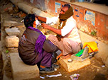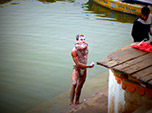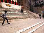 Antes de sair para o aeroporto, aproveitamos a manhã livre do dia 6 de janeiro para visitar os Ghats a pé. Passamos ao lado de algumas cerimônias de cremação, vimos de perto os “Sadhus”. No hinduísmo, um termo comum para designar um místico, um asceta, um praticante de ioga ou um monge andarilho. “Sadhu” é também uma expressão em sânscrito e páli usada como interjeição para algo bem-sucedido ou realizado com perfeição. Muitas curiosidades nos chamaram a atenção, como as vacas que já nos eram familiares, os búfalos, os biguás voando baixo, homens fazendo a barba e cortando o cabelo às margens do rio, os que se banhavam em suas águas frias e não tão limpas assim, pelo menos nesse trecho de Varanasi vimos uma água turva e de forte odor, um “Sadhu” estrangeiro ou albino entre muitos outros, cada qual com a sua excentricidade, o odor e a fuligem saindo dos crematórios, as crianças jogando críquete, esporte mais popular da Índia, turistas fazendo sessões de massagem, o comércio local vendendo galões de plástico vazio para que os turistas levassem a água sagrada do rio como recordação para seu puja, todos os tipos de comida vendidos nas ruas, um açougueiro matando uma galinha ao vivo e um comboio pedestre levando um corpo a caminho de um Ghat. Pegamos nossas coisas no hotel e seguimos desesperados para o aeroporto super atrasados. Por sorte, um funcionário indiano nos ajudou a entrar no avião a menos de 10 minutos da decolagem. Milagre! Em Nova Délhi fizemos nossa conexão para Kathmandu, aonde chegaríamos ao final da noite para nos acomodar por duas noites antes de seguir rumo aos Himalayas (artigo de 8 de setembro).