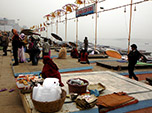 Começava o dia 5 de janeiro, e com pouco tempo para visitar a Índia. Em função dos problemas com o transporte público decidimos comprar as passagens de avião para Varanasi na mesma agência de turismo, mas apenas de ida, já que sua localização era metade do caminho à capital do Nepal, Kathmandu, nosso próximo destino. Varanasi, também chamada Benares ou Kashi, é uma cidade às margens do rio Ganges (Ganga), em Uttar Pradesh, a 320 quilômetros a sudeste da capital do estado, Lucknow. É a mais sagrada das sete cidades (Sapta Puri) no hinduísmo e jainismo. As outras seriam: Ayodhya, Mathura, Haridwar, Kanchipuram, Ujjain (Avanti) e Dwarka. Os hindus acreditam que a morte em Varanasi traz a salvação. Varanasi é um caldeirão onde tanto a vida e a morte se encontram. Também, é uma das mais antigas cidades continuamente habitadas do mundo e a mais antiga da Índia. Em Varanasi decidiríamos o que seria melhor, tomar um ônibus pelas estradas estreitas e perigosas em ascensão às montanhas nepalesas ou um voo de volta à Nova Délhi e depois outro à Kathmandu. Custo e tempo sempre eram os fatores que levávamos em consideração, mas a segurança acabava pesando quando reconhecíamos algum risco. Ao final, nos rendemos e compramos novas passagens de avião, pois nos desaconselharam a encarar a viagem de ônibus até a fronteira. Chegando a Varanasi, fomos recebidos no aeroporto pelo receptivo que nos levou diretamente para um hotel escolhido através do Booking.com. O valor da conta telefônica após a viagem foi pesado, mas a praticidade ao usar o celular para fazer reservas era tentador, e com isso conseguimos bons preços de estadia e ficamos livres para decidir tudo em cima da hora, sem ficar presos a roteiros. Ficamos há menos de 200 metros das margens do rio Ganges. Uma ansiedade pairava no ar, pois esse era mais um daqueles destinos tão esperados. Chegamos à cidade e já programamos o passeio de barco no rio para o final da tarde. Andamos pelas ruas da cidade para apreciar o comércio e percebemos um comportamento mais ameno da população. Não sofremos o mesmo assédio que em outras cidades indianas, de pedintes, vendedores, etc. Acreditamos que isso era fruto do respeito em relação a esse lugar, considerado o mais sagrado para o Hinduísmo, cuja população chega a aproximadamente três milhões de habitantes. Uma curiosidade. Soubemos que no mesmo dia de nossa chegada à Varanasi, Dalai Lama, líder religioso do Budismo Tibetano, encontrava-se a meros 100 quilômetros da nossa localização. Ficamos pensando na possibilidade de visitá-lo, mas não tínhamos tempo sobrando. À tarde compramos incenso, cd’s de música hindu e mantras, lembranças diversas e depois fomos comer na pizzaria Vaatika Cafe, indicação via Lonely Planet, muito agradável e às margens do rio Ganges. Foi um encontro emocionante ver de perto esse lugar sagrado para milhões de pessoas de diversas religiões. Também vimos crianças empinando suas pipas às margens do Ganges, nas plataformas e degraus dos Ghats ao longo do rio sagrado. A Índia tem uma antiga tradição com as pipas. Notamos que a temperatura caia rapidamente no final da tarde, então nos agasalhamos antes de sair para o passeio de barco no rio. Nosso guia remava e às vezes parava para resgatar algumas pipas que haviam caído em suas águas sagradas. Enquanto remava e se aproximava dos “Ghats” (local de cremação hindu) começamos a observar as cerimônias de cremação e ao nos aproximar vimos os corpos cheios de flores e adornos, enquanto seus familiares oravam. Foi um misto de admiração, respeito e estranheza que nos assoberbou. De qualquer forma, registramos as imagens e nos silenciamos. Uma frase escrita num muro de um dos Ghats ilustrou bem o que sentimos ali: “Fortunate are the people who reside on the banks of Ganga” (Felizes são aqueles que residem às margens do Ganges). A história para aquelas pessoas se fazia no exato momento em que testemunhávamos os fatos. Partimos mais ao sul do rio para o Ghat Dasashvamedha, onde o Puja vespertino já estava prestes a começar. Puja, que em sânscrito significa reverência, honra, adoração ou culto, é um ritual religioso realizado pelos hindus como uma oferenda a várias divindades, pessoas ilustres ou convidados especiais. Isto também tem sido seguido pelos budistas e sikhs para honrar várias crenças. No hinduísmo é feito em uma variedade de ocasiões e configurações, a partir do puja diário feito em casa, para cerimônias do templo e grandes festivais, ou para iniciar um novo empreendimento. Sentimos sua grandeza ao ver um ritual cheio de energia transmitido através da meditação, cantos e orações. Além disso, sentíamos o aroma do incenso ritmado pela dança dos monges que erguiam suas tochas, refletindo suas chamas nas águas do rio Ganges e sobre seus espectadores, o que criava uma atmosfera única com efeito sagrado. Foi uma experiência incrível! Retornamos ao hotel mais leves, mas já sentíamos saudades da Índia, pois no dia seguinte partiríamos para o Nepal. Nessa noite passei mal com o organismo um pouco saturado dos condimentos indianos. Pernoitamos no hotel de quarto com cama e banheiro conjugados. Um terror para um casal quando um deles passa mal com os efeitos dos condimentos indianos. Recomendamos levar protetor auricular, só que não!