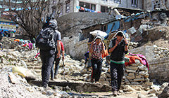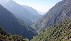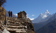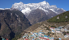 Namche é a água do degelo que corre na ladeira central fazendo barulho de cachoeira, é o pastor que empurra seus iaques ladeira acima aos gritos, é o porteador que se escora na calçada alta para descansar o pescoço, é o menino fardado que usa a mesma calçada para ver seu livro e atestar que não fez a lição de casa e pensar numa desculpa para o professor, é o vendedor escorado na porta a espera do cliente, é o escalador que entra na lojinha para procurar algum equipamento que esqueceu de comprar na cidade grande e se surpreeende por encontrar fácil, é o tilintar da marreta do artesão esculpindo a pedra para a construção, é o cachorro que silenciosamente teima em acompanhar o mochileiro ladeira abaixo e fica desconfiado quando o caminhante olha para ele, é o vendedor que abre a loja atrasado e corre para colocar as mercadorias na calçada, é o bando de iaques que sobe a ladeira tocando seus chocalhos avisando que a rua é estreita e a prioridade é deles, é o sol que chega de mansinho iluminando o cume das montanhas para só depois iluminar a base, é o helicóptero que quebra o silêncio trazendo alguns apressados que não gostam ou não estão com tempo para caminhar, é a gralha que mesmo parecendo assustada vem na calçada caçar grãos e restos de comida, é a loja de produtos originais com as últimas novidades em tecnologia surpreendendo a todos, é a lojinha “nós que fez” vendendo até autógrafo do George Mallory e se precisar ele manda fazer um do Edmund Hillary, é o turista que se arrasta ladeira acima ofegante que dá 3 passos e se escora nos bastões para respirar, é o caminhante que desce ladeira abaixo com olhar de despedida, é a nuvem que chega escondendo o sol e trazendo de volta o frio como se a noite estivesse voltando, é o estrume de iaque na calçada esperando que alguém o recolha para secar e usar como fonte energética, é o sapateiro sentado no chão que costura o solado de uma bota velha furada, são os iaque que curtem preguiça enquanto o dono fala no celular, são as duas mulheres de roupas multicoloridas que se encontram no meio da rua e conversam alegres e dão gargalhadas como se fossem ricas e de fato são porque sabem viver, é o escalador que volta do Everest e desce a ladeira melancólico, olha prá trás e vê tudo isso e tem a certeza da volta no próximo ano e se esforça para não esquecer estes detalhes pensando em escrever um artigo para compartilhar com os amigos, e na saída faz uma última parada no pórtico, olha para trás mais uma vez e faz duas fotos, baixa a cabeça e segue ladeira abaixo no rumo do destino que ele mesmo traçou.