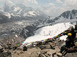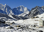 Continuando a caminhada, a 4.950m fazemos uma das subidas mais cansativas do trekking com direção à Lobuche. No final desta subida estão erguidos memoriais em homenagem a alpinistas mortos no Everest.