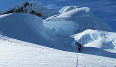 Descemos até o nosso acampamento alto (4.800m) sob ameaça de grandes pedras e pedaços de gelo que despencavam das alturas, sabendo que um dia voltaremos para tentar finalizar esta desafiadora escalada que surge na pouco explorada Cordilheira de Vilcabamba, que ainda preserva o mais puro estilo alpino exploratório, devido às poucas expedições que já decidiram enfrentar as suas selvagens montanhas.