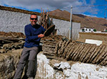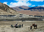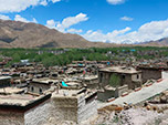 Ao longo daquela rodovia, também avistamos alguns pequenos vilarejos habitados, ou melhor, um aglomerado de casas tipicamente tibetanas. Ali definitivamente os chineses não ousavam se infiltrar. Descobrimos que estas comunidades sobrevivem de forma comunitária, uns ajudando os outros, inclusive na construção das casas em forma de mutirão. A arquitetura tibetana é inconfundível. As casas e mosteiros estão sempre voltados para o sul, cujas paredes são construídas a partir de uma mistura de rochas, madeira, cimento e terra. Não há telhados e os tetos são construídos retos para conservar o calor. As janelas são grandes para permitir a entrada da luz solar, as esquadrias pintadas de preto e decoradas com o tema das cores budistas. O interior destas construções é ricamente ornamentado com imagens e símbolos budistas, thangka (delicadas pinturas de deuses e mandalas em seda), bordados, móveis em madeira coloridos, imagens de mestres, grossos e lindos tapetes. Ingressar numa residência tibetana é por si uma experiência magnífica.