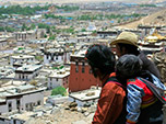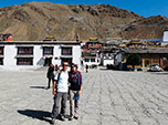 Nossa visita ao monastério Tashilhumpo se iniciou pela manhã e supostamente duraria poucas horas. Entretanto, nosso encantamento por aquele local e pelos devotos visitantes foi tamanho que passamos o resto do dia transitando nas mediações. Tashilhumpo está localizado numa colina de onde se tem uma visão panorâmica do vale ao redor de Shigatse. Pela quantidade de templos, cercados por muralhas, tem-se a impressão que se está numa pequena cidade. Lá viviam, antes da invasão chinesa, mais de 4.000 monges, porém, hoje vivem menos de um décimo disso por imposição e controle governamental. O guia nos explicou o complexo sistema criado pelo governo chinês para inviabilizar o ordenamento de novos monges. A China tenta quebrar, ou melhor, controlar a espinha dorsal da cultura tibetana, a religião.