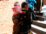 Havia muitas crianças de todas as idades. Nós ficamos encantados com os bebezinhos presos nas costas das mães e avós. Uma espécie de “sling” ou “canguru”, um pano simples que amarra a criança junto ao corpo da mulher. A criança ficava ali nas costas durante horas, inclusive durante o ritual de prostração. Assim como na tradição inca, em que as mães carregam suas crianças presas às costas, liberando as mãos para desempenhar suas atividades, aquelas crianças nos pareciam realmente muito à vontade, aquecidas com o calor da mãe e felizes. Este testemunho nos fez refletir a respeito de como o mundo ocidental lida com seus filhos. Hoje quando nasce uma criança, a primeira coisa que se pensa é comprar um enorme carrinho e trocar de carro, pois o trambolho é tão grande que um porta-malas maior se faz necessário. De fato há muitos produtos de consumo que trazem maior conforto e facilidade, mas em contrapartida, eles consomem nosso espaço, economias, liberdade e, quiçá, intimidade. A cada dia nós estamos mais “minimalistas”, ou seja, desejando viver com menos.