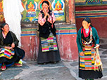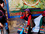 Acompanhamos o fluxo de devotos por algum tempo, mas logo sentamos e passamos a observá-los, divertindo-se com as crianças e com as pessoas que nos incentivavam a continuar caminhando. Foi um deleite espreitar aqueles homens e mulheres, jovens e idosos, caminhando, concentrados no seu mantra. Sua pele queimada pelo sol ardido e pela altitude fatigante delineam rostos de feições duras e traços profundos. Não imaginávamos o quão árdua era a vida destas pessoas. Viver naquela altitude, naquele frio intenso, ventos cortantes, invernos longos e duros. Sobreviver da parca agricultura sazonal, num solo árido e pedregulhoso, e da criação de animais. Senão bastasse, sua liberdade religiosa foi castrada, sua locomoção limitada e sua cultura condenada à extinção pelo ardiloso estratagema chinês.