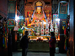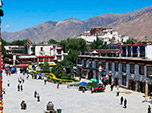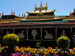 Em nosso passeio pela cidade, caminhamos em direção ao recinto mais importante para o budismo tibetano, Templo Jokhang. Não demorou muito para percebermos que estávamos na direção certa, quando passamos a acompanhar uma multidão de tibetanos que rumavam no mesmo sentido. Muitos deles imprimiam o ato de prostração, ou seja, alguns caminhavam lentamente com seus japamala e mani korlo, entoando mantras, enquanto outros deitavam no chão e levantavam dando apenas um passo, repetindo este ato por horas a fio. O templo Jokhang foi fundado pelo rei Songsten, construído para abrigar imagens budistas trazidas por suas duas noivas, a princesa chinesa Wencheng e a princesa nepalesa Bhrikuti.