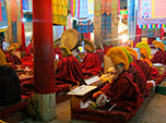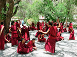 Há muita coisa para se ver e conhecer em Lhasa. Caminhar sem rumo pela cidade por si já é muito interessante, especialmente se seguir o Lingkhor, um caminho sagrado de quase oito quilômetros ao redor do centro de Lhasa, quase sempre repleto de peregrinos, alguns se prostrando por todo percurso. A Karina tirou uma manhã para percorrer o Lingkhor e voltou cheia de histórias para contar. Acabamos não conseguindo visitar tudo, especialmente aqueles nas redondezas de Lhasa, não apenas por falta de tempo, mas porque nosso “permit” limitava os ambientes que poderíamos circular. Nossa última visita foi Templo Sera, belo como os demais, cuja maior diferencial foi presenciar um ritual entre mestres e alunos. Uma vez por dia os monges se reúnem numa praça para debater e aprofundar sua compreensão a respeito dos ensinamentos budistas. Ao longo de mais de uma hora, é possível testemunhar um curioso duelo de perguntas e respostas entre monges, com muita expressão corporal, incluindo-se palmas, empurrões e tomada do japamala um do outro.