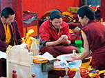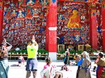 No Monastério Palcho, fomos autorizados a fotografar e filmar discretamente. Visitamos ambientes formidáveis, como a fascinante coleção de livros escritos em finas lâminas de madeira, rebuscados mandalas em areia fina, lindos artefatos moldados em manteiga, rituais, leituras sagradas e, especialmente, o entoar de mantras que nos deixou arrepiados.