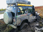 Paramos um pouco para admirar a paisagem e tomar fôlego quando veio um grupo de Jeeps e parou para perguntar o que tinha acontecido, explicamos o ocorrido e logo eles falaram: isto aqui é a parte boa! Eles nos convidaram para ir seguindo-os até um acampamento, e realmente a trilha foi piorando, muitos degraus na estrada, lama, piscinas e a coisa mais temida para um jipeiro por aqui, a tundra, muito parecida com o nosso charco. Ainda não tínhamos tido a oportunidade de conversar com o organizador do tour, mas quando paramos no acampamento falamos sobre as nossas pretensões e ele fez uma expressão de, não vai dar! Disse que nesta época do ano seria praticamente impossível passar pela tundra, e se mesmo assim tivéssemos esta sorte, dificilmente atravessaríamos os dois rios que estavam cheios e com forte correnteza, mas nos disse para irmos até onde achássemos que desse.