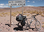 Para frente, terra e muita subida. De Santo Antonio de Los Cobres até San Pedro de Atacama foram cinco dias e 365 km, cruzando a fronteira com o Chile pelo Paso de Sico. Este trecho é, sem dúvida, o mais bonito e difícil de todo percurso. Passamos a primeira noite em Olacapato, em uma escola vazia. A segunda, acampados junto a Aduana Argentina. A terceira, acampados próximos a SAG chilena, que, apesar dos muitos graus negativos e do vento, nos negou abrigo. A quarta, acampados próximo ao Salar Águas Calientes e a última em Socaire.