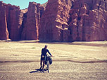 Voltamos para Salta de bicicleta, ou quase. No primeiro dia, atravessamos a Quebrada de las Conchas até Los Castillos, uma impressionante formação de arenito distante cerca de 40 km de Cafayate. Depois de uma pequena trilha, acampamos em uma espécie de caverna, com uma vista impressionante do rio, acompanhados de algumas águias descontentes com nossa presença.