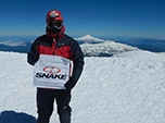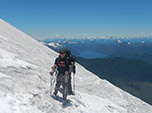 E desta forma às 10h37 do dia 18/11/2013 chegamos ao cume do Vulcão com seus 3.776 metros de altitude, com nosso amigo Jorge liderando a chegada. Foi um dos momentos mais bonitos que já presenciei nestes anos de montanhismo visto as dificuldades que ele apresentava e seu esforço e dedicação para chegar ao cume. Tiramos muitas fotos e comemoramos bastante juntamente com um grupo de alpinistas da Venezuela que já se encontravam no cume. De lá era possível avistar outras montanhas como o Cerro Tronador, Vulcão Vila Rica, Osorno entre outras. Com as forças renovadas após a conquista iniciamos nosso retorno ao parque de onde partiríamos para a segunda parte de nossa viagem , ficando no ar a pergunta. O que nos reservam as montanhas?