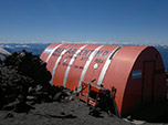 Após longas horas de caminhada por volta das 15h00 chegamos ao Refugio Lanin 2.315 metros de altitude, neste momento ventava muito e o frio cada vez aumentava mais, nos abrigamos no refugio onde preparamos nosso jantar e após arrumar os equipamentos para a parte final da escalada fomos ao nosso descanso merecido. Acordamos as 2h00 da manhã já com os equipamentos em ordem fizemos um lanche rápido e iniciamos a subida. Optamos em sair com os grampons desde o refugio pois já havia gelo logo acima dele, e vale lembrar que nesta época ainda há muito gelo na montanha o que facilita e muito na canaleta por exemplo por ser uma subida com inclinação entre 30 a 50 graus e cerca de 520 metros de desnível.
