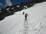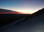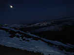 A noite estava perfeita, com uma lua cheia de encher os olhos que iluminava toda a montanha o que tornou possível inclusive fazer a subida sem o uso das lanternas. Faltando pouco mais de duas horas para alcançarmos o cume, o Luis liderava a subida com mais ou menos 1 hora de diferença para nós, o que lhe proporcionou fazer muitas fotos e vídeos relatando com precisão as belezas e dificuldades da escalada. Neste momento eu escalava junto de meu amigo argentino Pollo e abaixo de nós seguiam Beatriz e Jorge também argentinos. Neste ponto da escalada o Jorge estava sofrendo um pouco com a altitude e o cansaço e com isso fizemos algumas paradas afim de lhe dar apoio e incentivá-lo, visto sua dificuldade na subida.