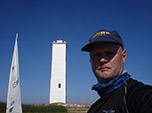 Com vento sempre fraco e o sol castigando sem piedade, a navegada se tornou um martírio. Só fui conseguir chegar ao farol, quando já eram quase 17h. O sinal do telefone apesar de fraco, permitiu mais um contato com o pai, que nesta altura já estava a caminho do Bojuru, de carro, para me encontrar à noite. Chegar lá já estava praticamente fora de cogitação. Após visitar o farol, um dos mais antigos e belos do RS, tratei de seguir viagem em direção à Tavares, que seria minha melhor opção para passar a noite. As duas últimas horas de navegada deste dia, foram as melhores de toda a viagem. Com vento médio de NE e praticamente sem ondas, o “Nando” acelerou forte nas rajadas, exigindo um bom esforço para manter o barco equilibrado e no rumo.