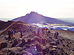 A parte final do ataque ao cume iniciada na madrugada do quinto para o sexto dia é particularmente difícil, não só pelo evidente cansaço acumulado dos dias anteriores. Além de ficar cada vez mais íngreme, o terreno também começa a ganhar uma consistência arenosa e com isso, cada passo que dávamos para cima era acompanhado de um deslize para baixo tornando a luta tanto física quanto mental. A partir desse ponto, passei a sentir a necessidade de descansar a cada 5 minutos por causa da exaustão e sede. A água que carregava comigo em garrafas plásticas já estava parcialmente congelada, indicando que a temperatura estava a alguns graus abaixo de zero e o frio que até então estava suportável, agora começava a incomodar.