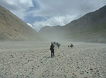 Quando chegamos finalmente a parte de aproximação a pé, pelas trilhas da cadeia de montanha, qual não foi nossa surpresa, de ter nos sido imposta a presença de um oficial local, armado de fuzil, para subir a montanha conosco. Incrível é que o militar foi uma presença muito agradável, era um homem bom, apaixonado pelas montanhas, como nós, e fez tudo ao seu alcance para ser útil ao grupo, com informações e disposição para ajudar a todo instante. A região que entramos estava fechada aos ocidentais há muitos anos. Acho que o último “permit” emitido para o Darkota foi há muitos anos atrás, como constatamos num dos livros de posto de controle que tivemos que assinar antes e depois de um paso.