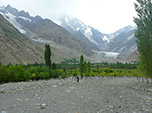 A saída da montanha, depois do sucesso de nossa expedição, se deu por Gilgit onde depois de paz nas alturas, voltamos para embrenhar numa região narrada como uma das mais violentas do mundo, há séculos. Como nossos jipes já estavam nos esperando em um vilarejo quando descemos da montanha, resolvemos não acampar e seguir para Gilgit, apesar do avançado da hora. Foi quase o fim de todos nós, porque entramos de madrugada na ponte que liga á cidade, que estava totalmente às escuras, por causa de um dos frequentes blackout’s na região. No meio da ponte, subitamente, holofotes acenderam como a explosão de um flash na frente dos nossos veículos, dezenas de metralhadores rodearam nossos carros, além de um caminhonete com bateria antiaérea na carroceria, posicionada direto para nosso comboio. Foi um erro termos viajado à noite, um erro quase fatal. Depois do susto, por sorte sem nenhum disparo, esclarecida nossa identidade, deixaram-nos passar. Adiante, nossa saída da região foi pela Karakoran Highway, a estrada mais espetacular e arrojada do mundo, um espetáculo por si só, dado o estonteante cenário de montanhas ao seu redor. Cruzamos com os primeiros ocidentais em 21 dias de Paquistão, um grupo de ciclistas italianos fazendo o percurso Islamabad até a fronteira com a China. Tem gente arrojada por ai, os caminhões paquistaneses e os desfiladeiros pela Karakoran HW metem medo!