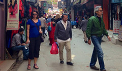 Fatima Williamson no Thamel, o bairro turístico de Kathmandu. Foto: Divulgação
