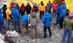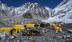 No acampamento base da face sul do Everest (Nepal) estão confirmadas 20 agências comerciais, é praticamente uma cidade que está sendo erguida em cima do Glaciar Khumbu. Estima-se que mais de 600 pessoas entre montanhistas, sherpas, cozinheiros e soldados irão conviver com o deslocamento constante do glaciar durante dois meses.