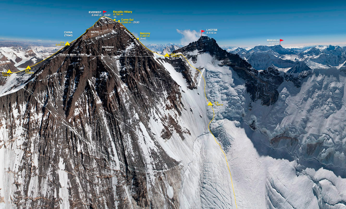 Cobertura Online do Everest 2014. Vista a partir do C4 a 8.000m. Local onde os alpinistas partem para o ataque ao cume. Arte: Elias Luiz